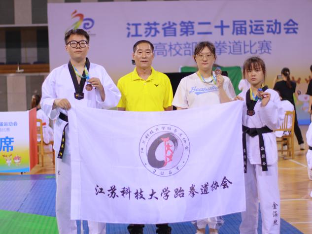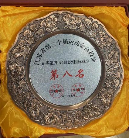 江苏省第二十届运动会跆拳道甲A组比赛是汇集了江苏省最高水平跆拳道运动员的比赛。面对比自己更专业、比自己更高大、比自己动作更快的对手,我校跆拳道代表队的运动员们没有选择退缩,在领队孙林副院长和尚武主教练的带领下,谨记跆拳道忍耐克己百折不屈的精神,奋勇拼搏,勇敢搏击,最终我校跆拳道代表队一共斩获三枚铜牌、两个第五名以及团体第八名的好成绩罗健安+80kg铜牌,白蕾琪+72kg铜牌,查方恋-47kg铜牌,赵原驰72kg第五名,张迈63kg第五名,周泽林和白蕾琪获得体育道德风尚奖。