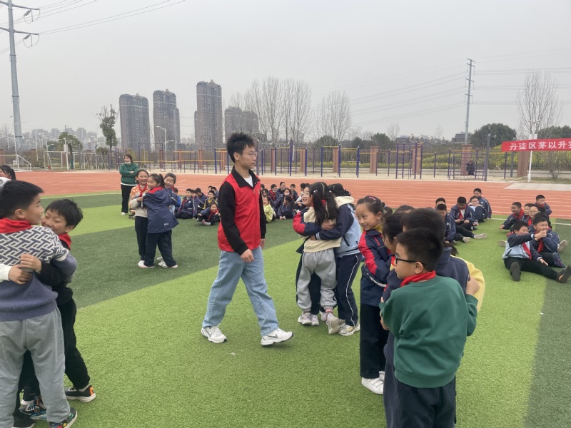 欢声笑语为校园体育课外活动增添乐趣,志愿服务展现科大学子风采。活动开展的体育游戏项目有“梅花几朵开”、“水果蹲”、“地鼠过山洞”等。在游戏过程中,志愿者们首先对各个游戏项目进行了示范,以便小学生们能够直观的了解游戏内容。在学校老师的配合开展下,小学们玩得不亦乐乎,欢声笑语在整个操场上回波荡漾。整个过程中志愿者们与校内学生在多个体育游戏当中实现了深度互动。