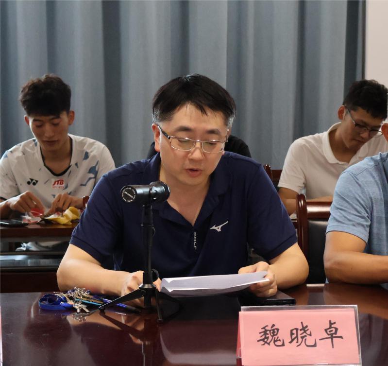 活动初始由徐仰良老师为2023届的毕业生致以祝贺词。在徐仰良老师的祝贺下,茶话会现场响起了一片热烈的掌声,掌声中蕴含了学院领导老师对2023届毕业学生最真情的祝愿,希望他们能够以最昂扬的姿态去迎接崭新的未来,同时也包含了毕业学生们对自己四年大学生涯的回首怀念与肯定。在这四年的时间里,有激情、有沉浮,更多的是毕业生们青春岁月与致学奋斗的交相辉映,魏晓卓院长继续勉励大家,向毕业生们提出三点希望:一是要永不言败、永不言弃;二是要终身学习、终生成长;三是要讲好科大故事,做堂堂正正的体育人。