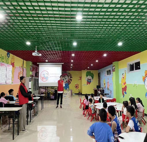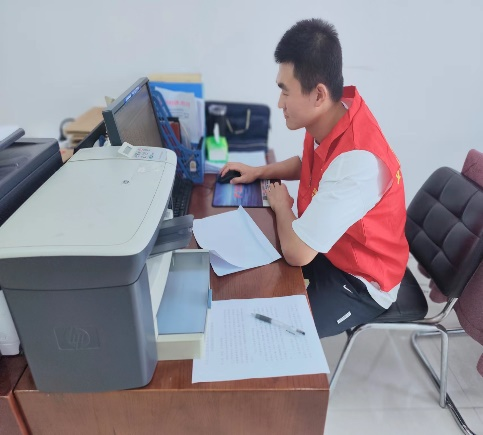 图为刘世灿同学在各乡村的党群服务中心参加“快乐暑期 共同成长”志愿服务活动
