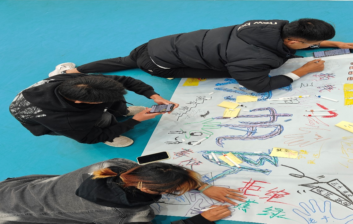 利用素质拓展形式,开展以“大声倾诉,走出阴霾”为主题的团队辅导活动。本次素质拓展在排球馆进行,心理辅导员陈栋老师通过团队组建、个性交流、说出心声、“画”解压力等活动环节,引导学生发现压力、交流压力、解决压力。活动期间,同学们用心思考,了解压力来源,在彩旗上绘画出形形色色的图案,表达出自己摆脱压力的方式。三面极具特色的彩旗,充分展现了同学们自信迎接压力的无畏精神,走出困境的决心。