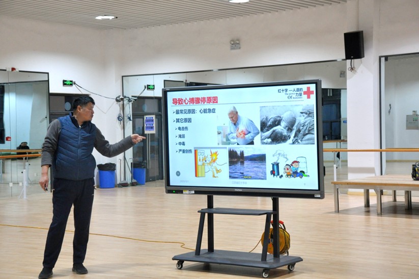 首先,王辉老师阐述本次讲座的目的,介绍了CPR的使用方法,讲述心肺复苏的具体操作流程,讲解了由于各种原因导致的心搏骤停,在4~6分钟内所必须采取的急救措施。让我们了解心肺复苏的方法和技巧,可以在紧急情况下提供有效的帮助,从而减少因心脏骤停等原因导致的死亡和伤害。通过观看视频的形式,对AED除颤仪的使用方法及注意事项作了相应的了解。在讲座过程中,同学们的广泛兴趣,大家积极踊跃地参与其中,与王辉老师深度互动,学习到了许多急救知识。