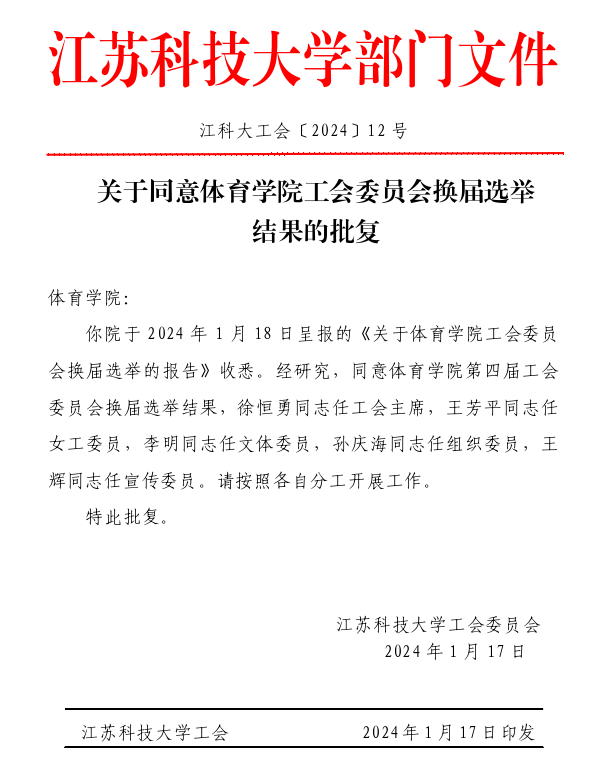 关于同意太阳集团9728工会委员会换届选举结果的批复