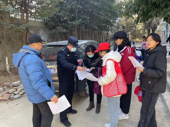 2122114031团支部学生韩庄艳等同学协助公安部门在社区进行普法宣传活动。在社区内,协助警察同志讲解电信诈骗的本质,向居民揭露各类电信诈骗的伎俩及防范措施,提醒广大群众保护好个人隐私,安装反诈app。提高居民网络诈骗的应对能力,增强居民对电信诈骗的防范意识。