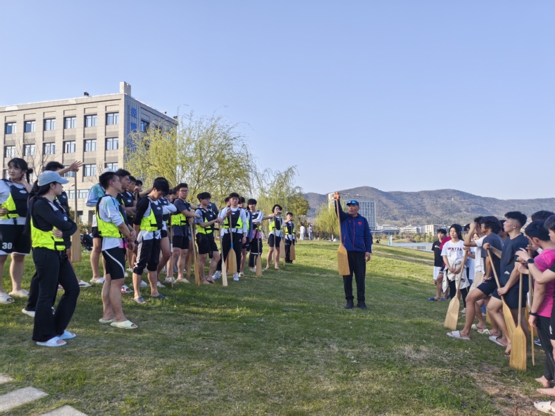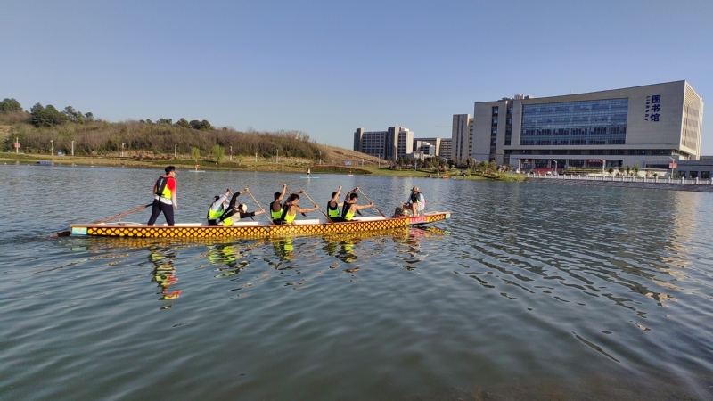 理论讲解过后,刘大海教练带领师生们来到美丽的海韵湖畔,进行实地教学与体验。他亲自示范划桨动作,纠正学员姿势,强调节奏与协调的重要性。在刘教练的悉心指导下,同学们手持船桨,齐声呐喊,亲身体验了龙舟破浪前行的激昂与震撼。这一刻,江科大的湖面上荡漾起团结一心、奋勇向前的磅礴力量,师生们在实践中感受龙舟运动的独特魅力,领悟团队协作的深层内涵。