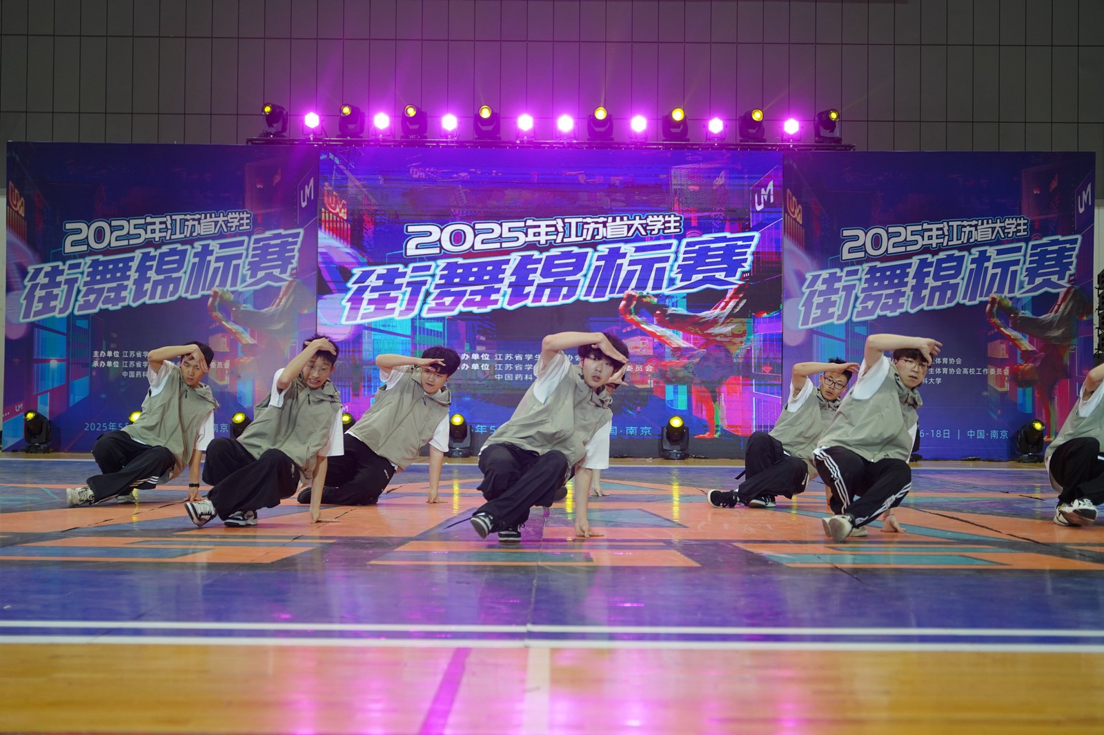 近日,2025年江苏省大学生街舞锦标赛在中国药科大学举行,大赛由江苏省学生体育协会主办,吸引了全省45所高校的近千名选手同场竞技。我校街舞队在主教练王芳平老师的带领下,凭借精湛的技艺与默契的团队协作,喜获4金3银2铜,荣膺团体总分榜首。