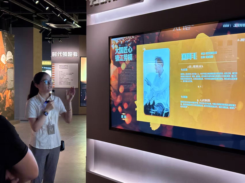 图为讲解员介绍镇江在线劳模记录。张诩曼供图