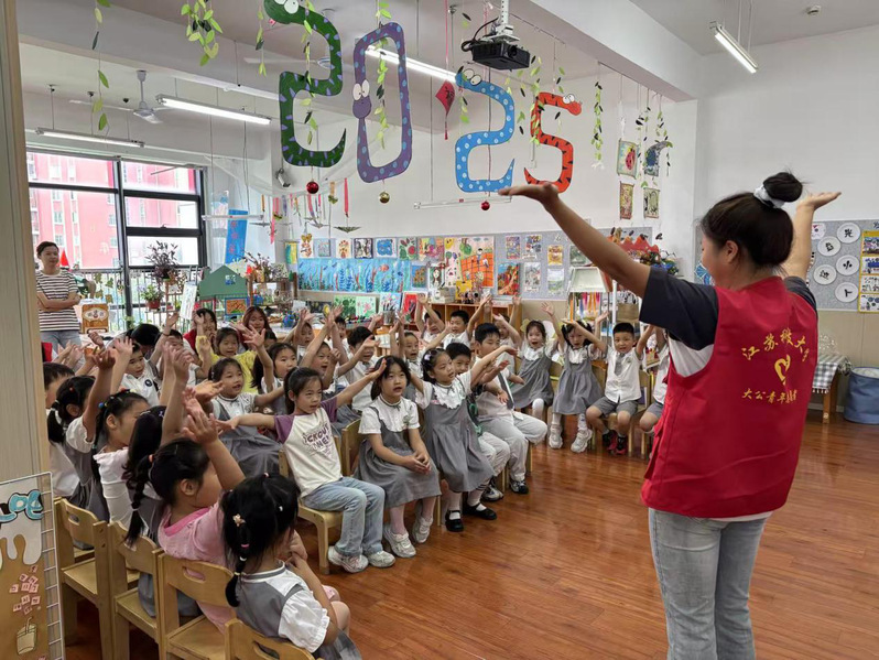此外,“青禾守护团”还走进镇江市爱乐思幼儿园,开展幼儿体育启蒙实践。同学们设计趣味游戏与户外锻炼,将运动理论与幼儿体能训练相结合,助力幼儿健康成长。活动不仅锻炼了学生的沟通与组织能力,也探索了学前体育教育创新模式,为推动体教融合提供基层经验。
