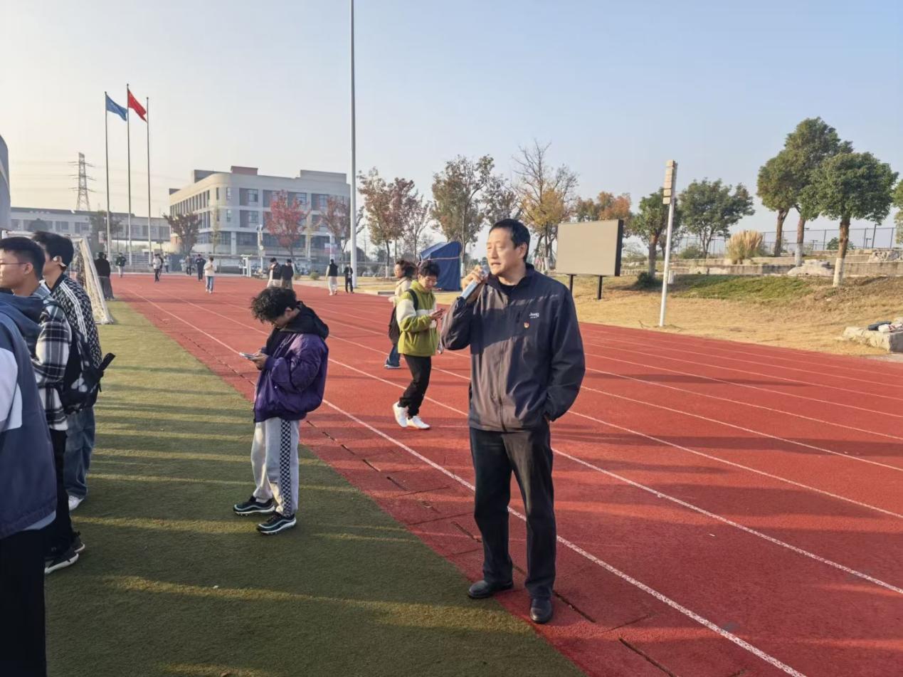 本次测试的一大亮点是党建与业务工作的深度融合。学校教工支部与359医院开展党建共建,党委书记陈昱、支部书记带领教师党员深入测试一线,全程参与组织协调工作;359医院则派出救护车及医护党员驻场保障,不仅承担现场医疗保健职责,更在耐力跑等高强度项目期间全程值守,及时应对各类突发身体状况,以红色党建力量为学生安全保驾护航,构建起“党建引领、医校协同”的安全保障体系。