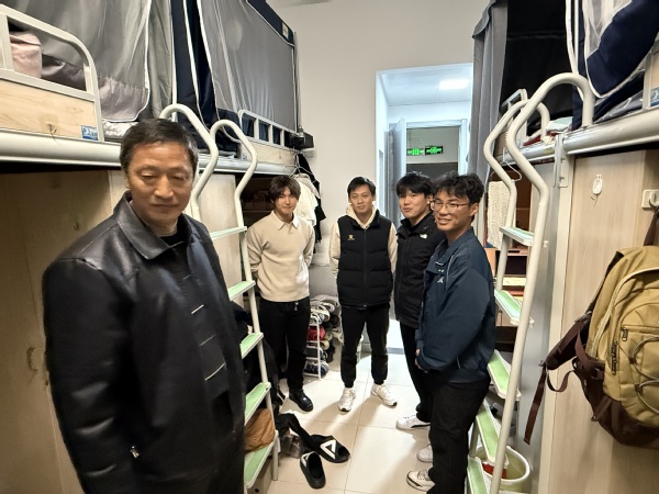 副院长赵长征充分发挥专业特长,就体育训练、技能提升等问题与同学们深入交流。他特别检查了宿舍区的安全设施,提醒同学们要增强安全意识,注意用电安全,共同维护安全稳定的校园环境。副院长王长征则重点关注学生的日常生活需求,认真听取同学们对宿舍设施、后勤服务等方面的意见建议。